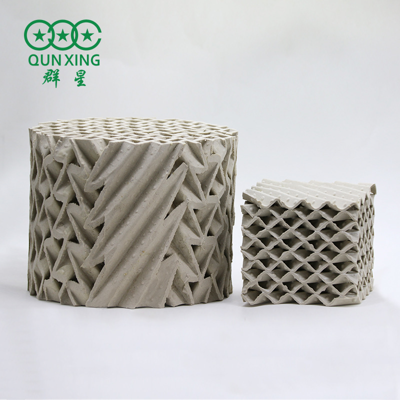 在精餾裝置上被廣泛應(yīng)用。它具有以下特點(diǎn): 1.填料上端和下端的通道垂直設(shè)置,并與凸條 硫酸裝置中干燥塔和吸收塔大多采用耐酸堿性 之間所形成的傾斜狀的通道圓滑過渡連接當(dāng)液體 能良好的陶瓷填料。傳統(tǒng)的干吸塔基本上都采用散 流經(jīng)填料層本體時液體能垂直地從上到下進(jìn)行流